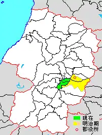 Map showing original extent of Higashimurayama District in Yamagata Prefecture