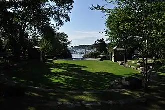 The High Street Historic District encompasses a well-preserved 19th-century residential area of Camden, Maine. Extending along High Street (United States Route 1), the district has maintained its character since the 1920s, despite encroaching commercialization of nearby areas, and retains a cross-section of architecture of the 19th and early 20th centuries. It was listed on the National Register of Historic Places in 1989, and enlarged in 1999 to include the Olmsted Brothers-designed Harbor Park at Main and Atlantic.[1]