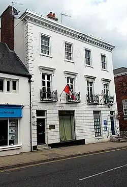 The building, which was built as a residential property in 1849, was converted in the late 19th century for use as the headquarters of the Dorsetshire Rifle Volunteers.[1] This unit evolved to become the 1st Volunteer Battalion, The Dorsetshire Regiment in 1887 and the 4th Battalion, The Dorsetshire Regiment in 1908.[2] The battalion was mobilised at the drill hall in August 1914 before being deployed to India.[3][4] After the Territorial Army infantry presence in Dorchester was reduced to a single company, C Company (Dorset), Wessex Volunteers,[2] at the newly built Poundbury Road Territorial Army Centre, in 1967,[5] the High West Street drill hall was decommissioned and subsequently converted for commercial use.[1]