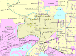 26. ^ "SCHOOL DISTRICT REFERENCE MAP (2010 CENSUS): Harris County, TX" (PDF). U.S. Census Bureau. Retrieved August 1, 2020. - Highlands CDP boundaries are on page 5