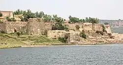 Gagron Fort is a hill fort situated in Jhalawar district. It is an example of a hill and water fort.[37][38] The fort was built by Bijaldev Singh Dod (a Rajput king) in the twelfth century. Later, the fort has also been controlled by Sher Shah and Akbar. The fort is constructed on the confluence of Ahu River and Kali Sindh River. The fort is surrounded by water on three sides and a moat on the forth side and hence earned the name "Jaladurg". The fort has reportedly seen 14 battles and 2 jauhars of queens.[39][40]
