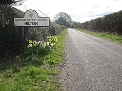 Hilton is a hamlet in the Lichfield District in Staffordshire, England. It lies within the parish of Wall, about three miles from Lichfield. It is formed around two roads, Cranebrook Lane and Pouk Lane. The M6 Toll motorway, opened in 2003, bypasses Hilton to the northeast.
