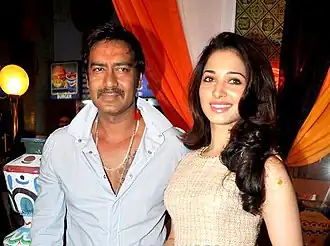 Himmatwala (transl. Brave One) is a 2013 Indian Hindi-language action comedy film written and directed by Sajid Khan and jointly produced by Ronnie Screwvala and Vashu Bhagnani. The film stars Ajay Devgn and Tamannaah Bhatia in the lead roles. Set in 1983, it is an official remake of the 1983 film of the same name by K. Raghavendra Rao, which was, in turn, a remake of the 1981 Telugu film Ooruki Monagadu. The film was theatrically released worldwide on 29 March 2013, and was critically panned and underperformed at the box office, earning 68.87 crore against a budget of 68 crore.[4][5]