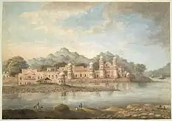 Mughal-era records, such as the Āʾīn-i Akbarī and Khulāṣat al-Tawārikh of 1695, also describe Haridwar as a place of pilgrimage, especially during the festival of Vaisakhi.[12] The Khulasat-ut-Tawarikh stresses that Haridwar was a place for bathing, almsgiving, and funerary rites and that two religious occasions held importance there: vaiśākhī and the kumbhamelā.[12] Furthermore, a European account written by Thomas Coryat from 1617 also describes the site as one of pilgrimage.[12] According to James Lochtefeld, the gosāīṃs, also known as nāgā saṃnyāsīs, were the earliest inhabitants of Haridwar.[12] In 1808, Haridwar remained a tiny settlement as per a contemporay source by Felix Raper.[12] The establishment of the Upper Ganga Canal and the Oudh and Rohilkhand Railroad led to the development of Haridwar into a more expansive habitation.[12]