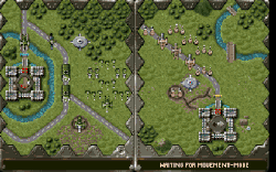 Screen split in two sides, each showing part of the map - the most common view in the game