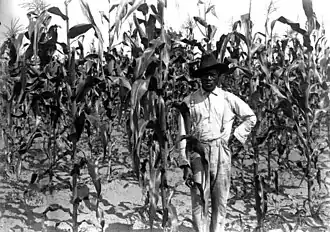 After emancipation and the passage of the thirteenth amendment, Black slaves were legally freed, but most of them lacked any kind of material wealth and were thus led into other oppressive relationships.[9] Many Black agriculturists were subjugated to land tenure agreements and working as sharecroppers, tenant farmers, and within the crop-lien system.[10] Southern black cotton farmers faced discrimination from the north. Many white Democrats were concerned about how many of African Americans were being employed in the US cotton industry and the dramatic growth of black landowners.[11][12] They urged white farmers in the south to take control of the industry, which from time to time resulted in strikes by black cotton pickers; for instance Black people led by the Colored Farmer's Association (CFA) strikers from Memphis organized the Cotton pickers strike of 1891 in Lee County in September, which resulted in much violence.[2]