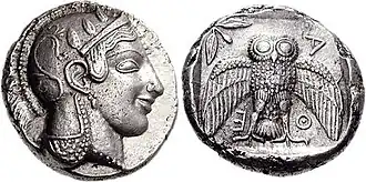 | Silver didrachm of Athens of heraldic type from the time of Peisistratus, 545–510 BC | |
