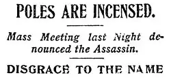 Polish political exiles founded organizations in America, and the first association of Poles in America, Towarzystwo Polakow w Ameryce (Association of Poles in America) was founded March 20, 1842. The association's catchphrase was "To die for Poland".[32] Some Polish intellectuals identified so strongly with Polish nationalism, that they warned repeatedly against assimilation into American culture. It was the duty of Poles to someday return to liberate the homeland, they argued to newly arrived Poles in America. The Polish National Alliance (PNA) newspaper, Zgoda, warned in 1900, "The Pole is not free to Americanize" because Poland's religion, language and nationality had been "partially torn away by the enemies". In other words, "The Pole is not free to Americanize because wherever he is – he has a mission to fulfill."[33] The poet Teofila Samolinska, known as the "mother of the Polish National Alliance," tried to bridge the gap between the political exiles of the 1860s and the waves of peasants arriving late in the century. She wrote: