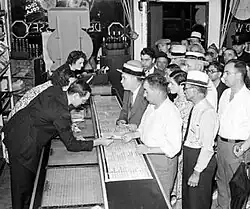Polish immigrants came in high numbers to Baltimore, Maryland, following the Civil War and created an ethnic community in Fells Point. They worked on farms in Maryland and many became migrant farming families. Oyster companies from the Gulf of Mexico hired recruiters to hire Polish farmers for work in the oyster farming industry. Jobs were advertised with illustrations of a green, tropical environment and wages in 1909 were promised at 15 cents per hour (equivalent to $5.25 in 2024) for men and 12.5 cents per hour ($4.37) for women.[48][43] Polish farmers in Baltimore, Maryland and in the southern United States commonly came to Louisiana and Mississippi during the winter months. Those that came were provided very small, cramped living quarters and only one worker per family was given a permanent job canning oysters. These were paid 12 cents per hour ($4.2) for men and 8 cents per hour ($2.8) for women.[48][43] Companies paid the rest to shell oysters and paid them 5 cents ($1.75) per measure; according to a worker, a measure should weigh about 4.5 lb (2.0 kg) but usually weighed more than 7–8 lb (3.2–3.6 kg).[48] Jobs were segregated by gender; women and children worked in the oyster house while men and boys fished on the boats.