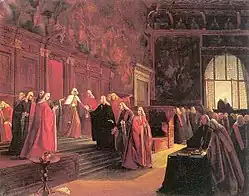 A portrait painting the fall of the Republic of Venice (1797): the abdication of the last Doge, Ludovico Manin
