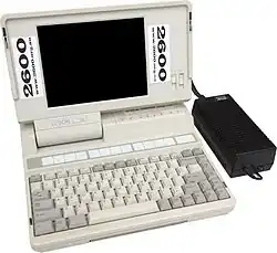 Toshiba launched the 8/16-bit Toshiba T1100 in 1985, and has subsequently described it as "the world's first mass-market laptop computer".[10] It did not have a hard drive, and ran entirely from floppy disks. The CPU was a 4.77 MHz Intel 80C88, a lower-power-consumption variation of the popular Intel 8088, and the display was a monochrome, 640x200 LCD. It was followed in 1987 by the T1000 and T1200. Although limited floppy-based DOS machines, with the operating system stored in ROM on the T1000, the Toshiba models were small and light enough to be carried in a backpack, and could be run from Ni-Cd batteries. They also introduced the now-standard "resume" feature to DOS-based machines: the computer could be paused between sessions without having to be restarted each time. In 1990, Toshiba launched the Toshiba T3200SXC that was "the world's first laptop computer with colour display".[11]