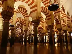 The interior of the former mosque of Córdoba, showing its distinctive arches.