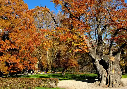 The Hofgarten was originally laid out on the site of a river meadow under the direction of Ferdinand II, Archduke of Austria in the sixteenth century. At the time, it was one of the most elaborate gardens laid out north of the Alps.[1] During its 600-year history, it was turned into a Renaissance garden, a French formal garden and, since 1858, an English landscape garden.[2] Its last conversion was conceived by Friedrich Ludwig von Sckell, but carried out four decades later by an unknown landscape designer who deviated significantly from Sckell's original proposal.