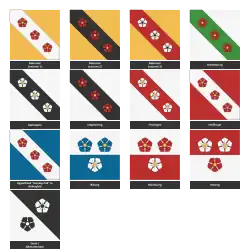 5. ^ a b This 13th century quartering took place relatively early and was maintained unchanged throughout the centuries even after their elevation to Counts. The positioning of the Symaningen arms in the most important location has led to the speculation that the attribution was reversed and these were in fact the actual original Hohenfeld arms. However, since the Hohenfeld occasionally chose to use only their rose arms (e.g. Christof v Hochenfeld in Wappenbuch Neustift (1558)), this speculation seems unlikely.