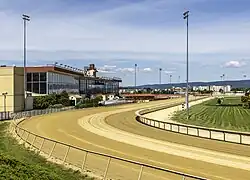 The track opened on December 2, 1933.[1] It was the first horse track to open in West Virginia, following the legalization of parimutuel wagering earlier in the year.[2] It was developed and operated by the Shenandoah Valley Jockey Club, led by Joseph Boyle.[3] It became America's first winter race meet upon its opening.[4] The facility, located on the former grounds of the Charles Town Horse Show,[5] was constructed in two months at a cost of $160,000[2] (a huge sum during the height of the Great Depression). The developers believed that it would draw large crowds due to it being the only northern track to hold races during the winter season, and they were right. Even with freezing temperatures and odds being calculated by slide rule, the grandstand overflowed. Train service from Baltimore boosted attendance, and the track continued to thrive through World War II.[6]