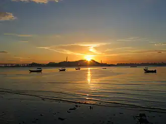 The Hong Kong–Shenzhen Western Corridor, also known for the main component Shenzhen Bay Bridge, is a cross-border highway between Shenzhen, Guangdong Province and Hong Kong. The highway bridge is a 5.5-kilometre (3.4 mi) dual three-lane controlled-access highway. It connects Ngau Hom Shek (traditional Chinese: 鰲磡石; simplified Chinese: 鳌磡石), Hong Kong,[1] to Dongjiaotou,[2] which is administratively located in Nanshan District of Shenzhen. The corridor also had other components, a border checkpoint Shenzhen Bay Port,[2][3] built on reclaimed land,[4] as well as roads that connect the corridor to the existing road network of Shenzhen.[3][4]