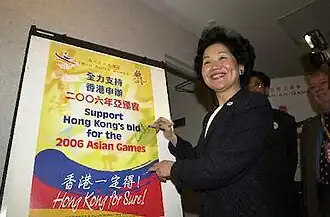 - ^ "Chief Secretary for Administration lobbies for 2006 Asian Games at Sydney Olympics". Press Release of the Government of the HKSAR. Retrieved 6 February 2022.