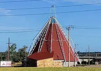 The Hopewell Baptist Church in northwestern Oklahoma County, Oklahoma, also known as the Teepee Church, was designed by architect Bruce Goff[2] in the modernist style. It was listed on the U.S. National Register of Historic Places in 2002.[1] It was deemed "an excellent example of the architecture of Bruce Goff during the time he was Director of the School of Architecture at the University of Oklahoma."[3]