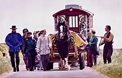 For its first two decades, Horse + Bamboo toured using horse-drawn transport. These productions started as outdoor shows and moved into a marquee after four years. Eventually, the company began to create shows that played in village halls and other community centres. The performers walked about 400 miles each season, living in tents and cooking on open fires. Horse-drawn touring occurred in England, Scotland, Ireland, Hungary and Slovakia. Now, the company tours its productions throughout the UK and has toured in Spain, the Netherlands, Germany, and Belgium. For a while, the company also used the pPod,[5] a portable structure designed by Magma Architecture[6] which can be set up in 90 minutes and seats up to 35 people.[7][8] A co-production (with In the Heart of the Beast Puppet and Mask Theatre) of Company of Angels toured the United States between 2003 and 2006.[9]