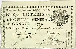 The monopoly that the Hôpital général held over the rental of “mourning coats” and other funeral objects generated significant revenues and constituted an additional privilege granted to the institution. Perhaps more surprising are the lotteries that were organized in the eighteenth century through a company founded for the occasion; the lotteries took place several times a year. Far from being a paltry source of funds, they sold upwards of 15,000 tickets for a sum total of three hundred thousand Genevan pounds.