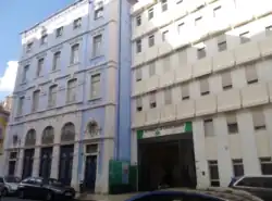 In 1890, the building was converted into an ad hoc hospital facility in response to a flu epidemic. In 1903, the building was put under the direct responsibility of the Ministry of the Kingdom, and it became part of the city's main hospital centre, then collectively known as "Saint Joseph's Hospital and Annexes" (Hospital de São José e Anexos) and from 1913, called the "Civil Hospitals of Lisbon" (Hospitais Civis de Lisboa, HCL).[3] In 1905–1908, it underwent profound renovation works, overseen by engineer Luís de Melo, to make it suitable as an hospital for venereal diseases: it now had a total of 700 beds, an operating room, a morgue, and an outpatient clinic; fully equipped with a lift and electric light. In 1910, it was renamed "Hintze Ribeiro Hospital", and it became affiliated with the Lisbon Medical-Surgical School; in 1911, following the 5 October 1910 revolution, it was renamed "Lisbon Faculty of Medicine Teaching Hospital" (Hospital Escolar da Faculdade de Medicina de Lisboa"); only in 1922 did it receive administrative and financial autonomy. In 1953, the recently built Saint Mary's Hospital became the city's teaching hospital.[2]