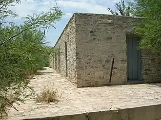 In the historic district, there are petroglyphs made by Native Americans. The springs were visited by Pedro de Rábago y Terán in 1747, who found Apaches farming the area. In later years the Comanche Trail passed nearby.[4] The hot springs remain, at a temperature of 105 degrees Fahrenheit, and may be used for soaking.[2] The water contains sodium, potassium, calcium, magnesium, sulfate, chloride and smaller concentrations of arsenic, lithium, rubidium, strontium, thallium, uranium, and tungsten.[5]
