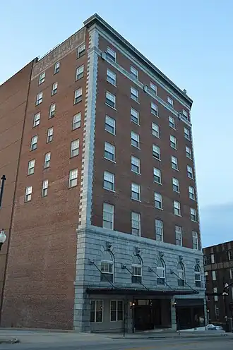The main section was built in 1927–1928, and consists of a ten-story, brick main section with two smaller axes to form a "V"-shape. The building is in the Neo-Adamesque style. The building once included the Capitol Theater, and incorporated a three-story rectangular hipped roof wing, or annex, that was the former Municipal Building and City Market complex.[3] The building provides senior housing, known as Danville House.