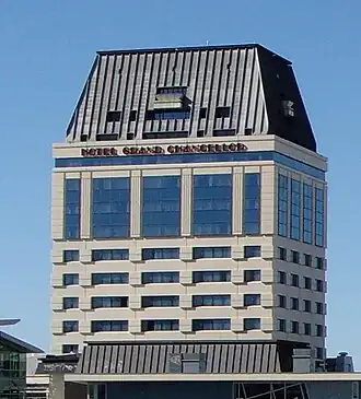 The Hotel Grand Chancellor (also known as the Grand Chancellor Hotel) was a major four-star hotel in the centre of Christchurch in New Zealand, one of eleven Hotel Grand Chancellor establishments across Australasia. Until 2010, it was the city's tallest building standing at 85 metres (279 ft) and 21 storeys,[1][2] until it was overtaken by the 86.5 metres (284 ft) tall Pacific Tower.[3]