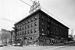 Hotel Normandie in the 1940s, Looking SW at the intersection of 6th and Normandie