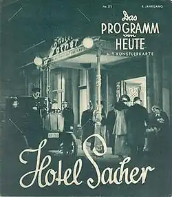 Hotel Sacher is a 1939 German drama film directed by Erich Engel and starring Sybille Schmitz, Willy Birgel, and Wolf Albach-Retty.[1]