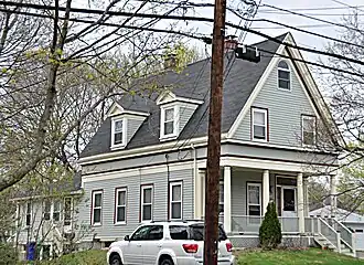 The House at 307 Lexington Street in Newton, Massachusetts, is a well-preserved small-scale Greek Revival house. The 1+34-story wood-frame house was built c. 1860, and has a steeply pitched gable roof with paired gable dormers on the side, and a round-arch window at the top of the gable (an Italianate feature). The front gable hangs over a full-width porch supported by Doric columns. A classic entablature encircles the house.[2]