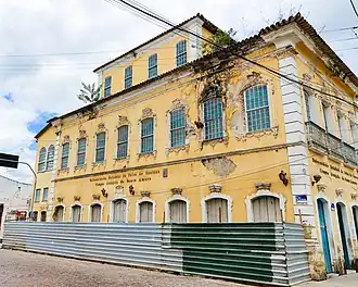 The House at Rua da Matriz, no. 9 (Portuguese: Casa da Praça Rodrigues Lima, nº 105) is a historic residence in Santo Amaro, Bahia, Brazil. It is also known as the House at the Praça da Purificação, 9 (Portuguese: Sobrado à Praça da Purificação, 9) or Sobrado de Bijú. It is an urban sobrado, or manor house, of the 19th century. Like other Bahian urban sobrados and convents of the period, it has a belvedere. It is located within the Historic Center of Santo Amaro, and is one of many historic structures surrounding the Praça da Matriz. The house is located on the square and looks out towards Parish Church of Our Lady of Purification. It now functions as the State University of Santo Amaro, Campus Avançado de Santo Amaro. It was listed as a historic structure by the National Institute of Historic and Artistic Heritage in 1943.[1][2][3]