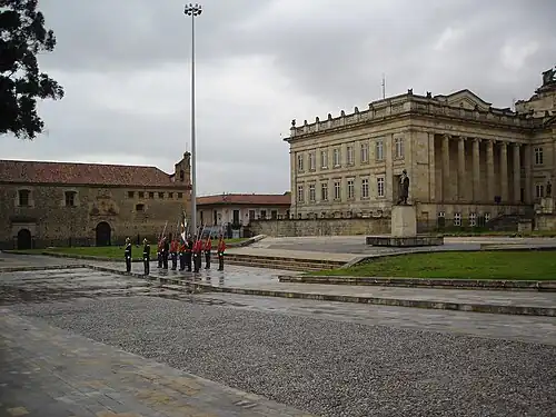 The Casa de Nariño is guarded by the National Army of Colombia's 37th Infantry Presidential Guard Battalion also known as the Presidential Guard Battalion, created by the decree of the President of Colombia Miguel Abadía Méndez on September 7, 1927.[15] Decree 367 of 1928 gave it its current name. The Battalion was raised by Lieutenant Colonel Roberto Perea Sanclemente on August 16, 1928. A precedent for its foundation is the so-called Guardia de Honor del libertador Simón Bolívar (Spanish for Honor Guard of the Liberator Simón Bolívar), created in 1814 on his orders during the Spanish American Wars of Independence.
