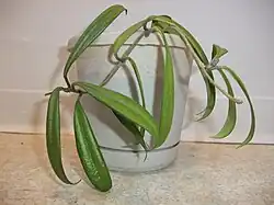 Hoya siamica is a slender vine in the family Apocynaceae and tribe Marsdenieae. It is native to China and Indochina and has characteristic long light green leaves.