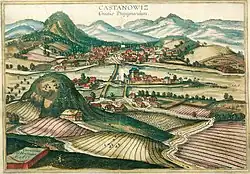 The Ottoman 1537 offensive against Kostajnica and Dubica ended in Ottoman defeat in a battle near Jasenovac. They nevertheless conquered Dubica in 1538, and conducted raids in the Kostajnica area in 1539, failing to capture any of the forts, but causing widespread destruction.[8] Attempts to capture Kostajnica were repeated in 1550 and 1552.[9] Finally, in 1556 the Ottoman army, led by Malkoč-beg, captured Kostajnica after a one-day siege.[10]
