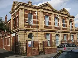 Hunslet was home to the first free public library in Leeds when a branch library opened on evenings from October 1870 in a room at the Hunslet Mechanics Institute. It became a day branch in 1912. On 23 February 1931, the new building was opened by Arthur Greenwood MP and Minister for Health.[14] The fixtures and fittings in the interior of the library, with an adult and junior reading room, were designed by Thomas Horsman and Co Ltd, costing £1,049 17s 6d.[15] The building is now Hunslet Library and Community Hub.[16]