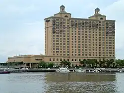 Totaling approximately 2,000 acres (8.1 km2), Hutchinson Island was targeted as the site for a public-private partnership to build a convention center and hotel.[5] Chatham County voters approved spending $63 million in public special-purpose local-option sales tax money for the trade center and $10 million for the road system on the island. The Savannah International Trade and Convention Center and the Westin Savannah Harbor Resort were built.[6][5] In addition, the state of Georgia provided $18 million, and former land owner CSX railroad donated 25 acres (100,000 m2) for the public trade center.[5]