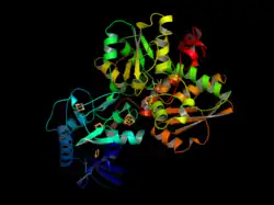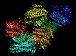 - ^ Shima S, Pilak O, Vogt S, Schick M, Stagni MS, Meyer-Klaucke W, et al. (July 2008). "The crystal structure of [Fe]-hydrogenase reveals the geometry of the active site". Science. 321 (5888): 572–575. Bibcode:2008Sci...321..572S. doi:10.1126/science.1158978. PMID 18653896. S2CID 206513302.