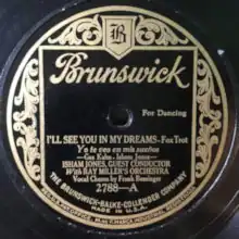 3. ^ "Brunswick matrix 14389-14392. I'll see you in my dreams / Isham Jones; Ray Miller Orchestra - Discography of American Historical Recordings". adp.library.ucsb.edu. Retrieved 2021-08-24.