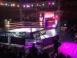 On May 15, 2004, it was announced that “El Café del Milenio”, a television segment that originally aired in WWC's Superestrellas de la Lucha Libre, was being brought to IWA's programming.[40] The promotion also held a benefic wheelchair basketball game.[41] On June 20, 2004, one of the promotion's talents, Víctor Rodríguez, died of a heart attack.[42] The promotion then changed all of its schedule to hold a number of homages to the wrestler.[43] From this point onwards, the momentum gained during the year was lost and the assistance was irregular.[44] During the 2004 Summer Olympics, the promotion was forced to change the horary of its programs to accommodate Telemundo's coverage of the event.[45] During the summer of 2004, IWA collaborated with Ring of Honor (ROH) in a talent exchange, where several of the latter's wrestlers came in representation.[46][47] On September 11, 2004, two of the promotion's talents, Carlos Cotto and Slash Venom, competed in a ROH card.[48] The passing of tropical storm Jeanne over Puerto Rico affected the organization of cards during this month.[49][50] Besides its ongoing relationship with ROH and the rekindled agreement with NWA-TNA, the IWA also tried to bring professional boxers into the promotion as special referees, unsuccessfully approaching Félix Trinidad and Miguel Cotto (who is the cousin of Carlos Cotto).[51] During this timeframe, the IWA prevented the participation of some of its talents in a card held by independent promotion NWG, deviating from its previous cooperation with independents.[52] For Histeria Boricua 2005, the promotion contacted several international talents, including Abdullah the Butcher and Nidia.[53] After Figueroa wrestled with independent promotion CWF, the IWA threatened the company with legal action.[54] During the offseason, the promotion modified the horary of their shows to accommodate special programming in the channel.[55] Leading to Histeria Boricua 2005, the IWA aired special programming to promote the event.[56] The promotion also repackaged the content of their PPV as a DVD.[57] The IWA also readjusted the days in which secondary wrestlers were used.[58] In February 2005, the promotion held a massive tryout.[59] On March 24, 2005, the IWA rekindled its relationship with WWE, reaching an agreement that would see some developmental talent arrive to the promotion without it being considered a territory itself.[60] Along their previous working relationships with NWA-TNA and ROH, this meant that the promotion had reached accords with all three major North American promotions. Locally IWA and NWS joined forces for the Juicio Final 2005 card.[61] Entering the summer, the IWA began coordinating a show in collaboration with International Gladiators of Wrestling, to be held at the Coliseum of Puerto Rico.[62] As part of its alliance with WWE, Eugene was brought for the Víctor Rodríguez Memorial Cup.[63] In July 2005, it was announced that Shane Sewell would jump from the IWA to NWS.[64] The acquisition of an active maineventer lead to the cancellation of the collaboration between both promotions.[65] The IWA responded by filing a legal complaint over the ownership of a ring, but the case was dismissed.[66][67][68] In August 2005, it was reported that WWE had further plans for both IWA and WWC.[69] In August, reports noted that the promotion was having issues running shows in its habitual venue, the José Cestero Court.[70] However, this issue was solved within weeks.[71] During this month, the promotion also faced other difficulties including a lawsuit filed against them by the family of Víctor Rodríguez and losing their narrator, Willie Urbina.[72] On March 18, 2006, independent promotion PWA accused the IWA and NWS of sabotaging one of its cards, with both promotions reflecting the blame.[73]
