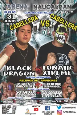 The IWRG Cabellera vs. Cabellera (Spanish for "Hair vs. Hair") show was a major lucha libre event produced and scripted by Mexican professional wrestling promotion International Wrestling Revolution Group (IWRG), that took place on June 3, 2018 in Arena Naucalpan, Naucalpan, State of Mexico, Mexico. The focal point of the Cabellera vs. Cabellera series of shows is one or more traditional Lucha de Apuestas, or "Bet matches", where all competitors in the match risk their hair on the outcome of the match. The Lucha de Apuestas is considered the most prestigious match type in lucha libre, especially when a wrestlers mask is on the line, but the "hair vs. hair" stipulation is held in almost as high regard.