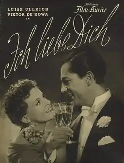 I Love You (German: Ich liebe dich) is a 1938 German romantic comedy film directed by Herbert Selpin and starring Viktor de Kowa, Luise Ullrich and Olga Limburg.[1] It was shot at the Johannisthal Studios in Berlin.[2] The film's sets were designed by the art directors Karl Weber and Erich Zander. It is in the style of a screwball comedy, inspired by the story of Adam and Eve.[3]