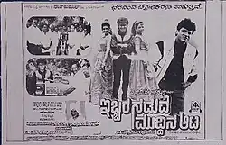 Ibbara Naduve Muddina Aata is a 1996 Indian Kannada-language comedy-drama film directed by Relangi Narasimha Rao and produced by T. M. Venkataswamy. The film stars Shiva Rajkumar, Raghavendra Rajkumar, Kasthuri and Swarna.[1] The film's score and soundtrack was composed by Sadhu Kokila. Cinematography was by Nagendra Kumar Mothukuri, director Relangi Narsimha Rao's long time collaborator.