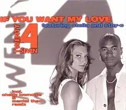 "If You Want My Love" is a song recorded by the Dutch band Twenty 4 Seven.[1] It was the tenth single and the sixth song to be taken from the fourth album, Twenty 4 Hours A Day, Seven Days A Week. The song remained a constant area of success only in the Netherlands, the single reached 77 on the (Single Top 100). It did not chart in the United Kingdom. "If You Want My Love" was postponed a couple of times, because "We Are the World" did successfully well in many other countries, like Spain where it went top 10.