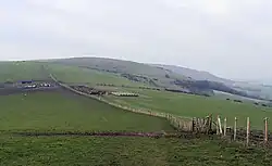 A path climbs up Whiteway Bottom to Pickers Hill and on the top there was a barrow field. It is ploughed out now. When the sun is low you can see bold prehistoric field lynchets at the head of the Whiteway combe (TQ 391 052), and back towards Highdole in the Rodmell parish, as well as up the dean around Long Bottom. The south slope of Whiteway Bottom (TQ 396 054) is a tranquil old Down pasture site. It was damaged by agro-chemicals at its western end, but the middle and eastern end are intact, with lots of butterflies, including small heath, chalkhill blue, common blue and marbled white, and lots of old Down pasture herbs.[9]