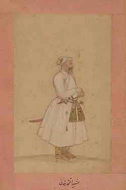 ![]() Painting of Iftikhar Khan containing a Perso-Arabic inscription on the border, ca.1650–1675 | |