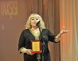 Ilhama Mazahir gyzy Guliyeva (Azerbaijani: İlhamə Məzahir qızı Quliyeva; 17 August 1943 – 25 February 2016) was an Azerbaijani celebrity, actress and singer of Azerbaijani folk and classical music. Throughout her active musical-stage career, Ilhama Guliyeva gained popular success in her respective genre of music and received such major state-level honors as Honored Artist of Azerbaijani SSR in 1982, People's Artist of the Republic of Azerbaijan in 1998 and People's Artist of the Republic of Dagestan in 2007.