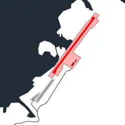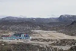 As of 2024, a new airport is under construction and was due to be completed by 2024, but delays have pushed completion to 2026.[6][4] The expansion of the airport will feature a 2,200 m × 60 m (7,218 ft × 197 ft)[7] runway to let the airport receive direct international airliner flights from mainland Europe and the Americas.[8][9] It will be located just north of the present airport.[10] The Nuuk and Ilulissat airport expansions have been subsidized with DKK 1.6 billion by the Government of Denmark. In 2025, the expansion was over budget, and needed a further DKK 400 million subsidy from the Government of Denmark, and a loan extension of DKK 1140 million.[11]