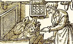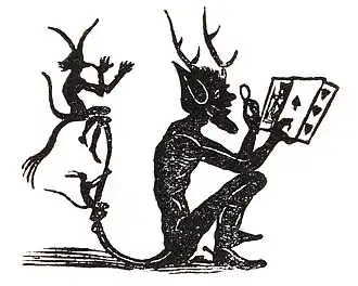 The Old English noun impa meant a young shoot or scion of a plant or tree, and later came to mean the scion of a noble house, or a child in general.[1] Starting in the 16th century, it was often used in expressions like "imps of serpents", "imp of hell", "imp of the devil", and so on; and by the 17th century, it came to mean a small demon, a familiar of a witch. The Old English noun and associated verb impian appear to come from an unattested Late Latin term *emputa (impotus is attested in the Salic law), the neuter plural of Ancient Greek: ἔμϕυτος 'natural, implanted, grafted'.[2]