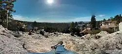 Indian Rock Path, a public walkway, connects the park to the intersection of Solano Avenue and The Alameda. The main part of Indian Rock itself has two sets of steps leading to its summit that were carved into the rock during the Depression years. All seven of the original Eucalyptus trees were removed from Indian Rock Park from January 2023 and April 2024 in an effort to rid the area of the invasive species.[8] The city has since then been planting native trees such as California Buckeye, Western Redbud, California flannelbush trees. Even after recent renovations, several signs of the previous Ohlone occupants remain embedded in the park, including the deeply-seated mortar carvings that served the lifestyle of these individuals.[9]